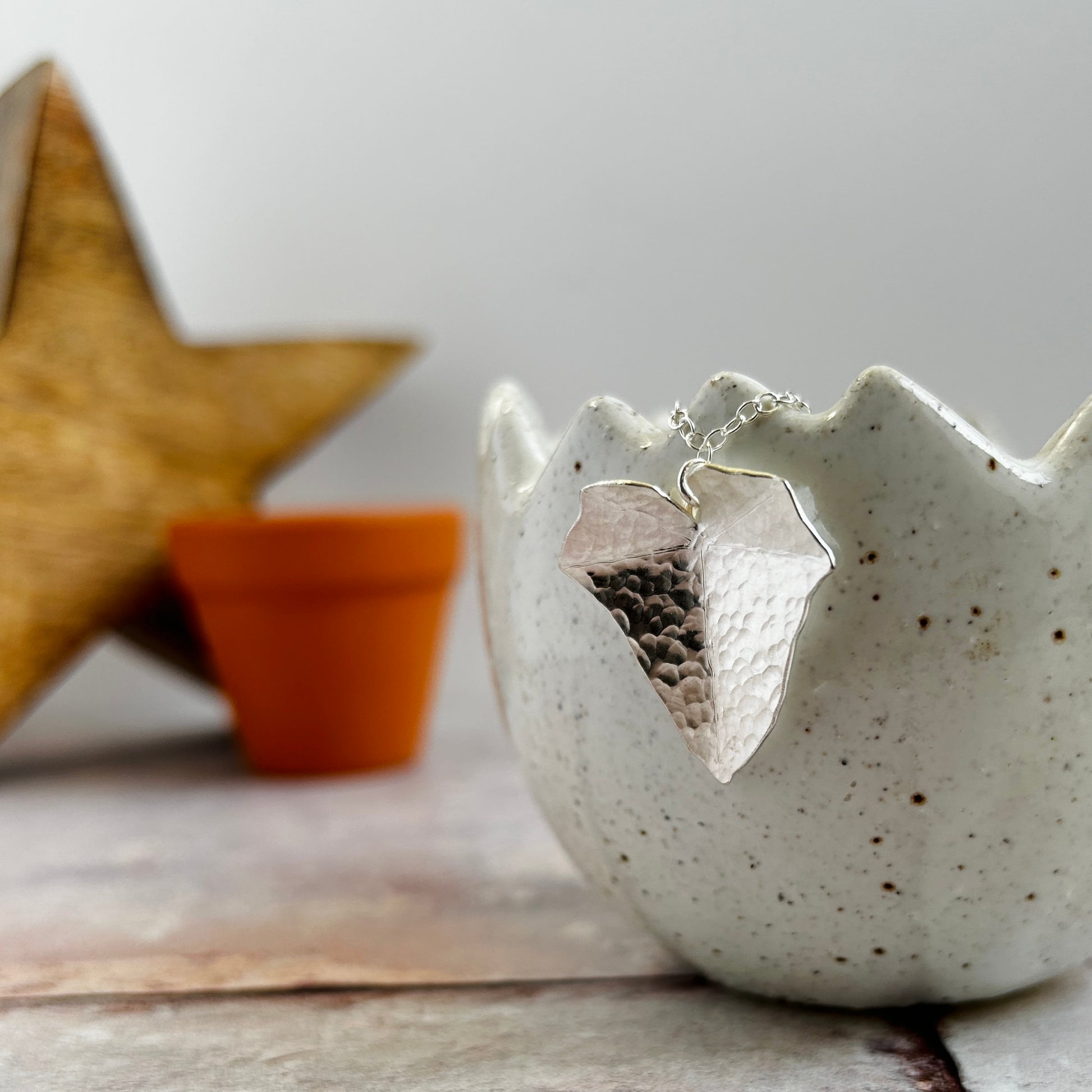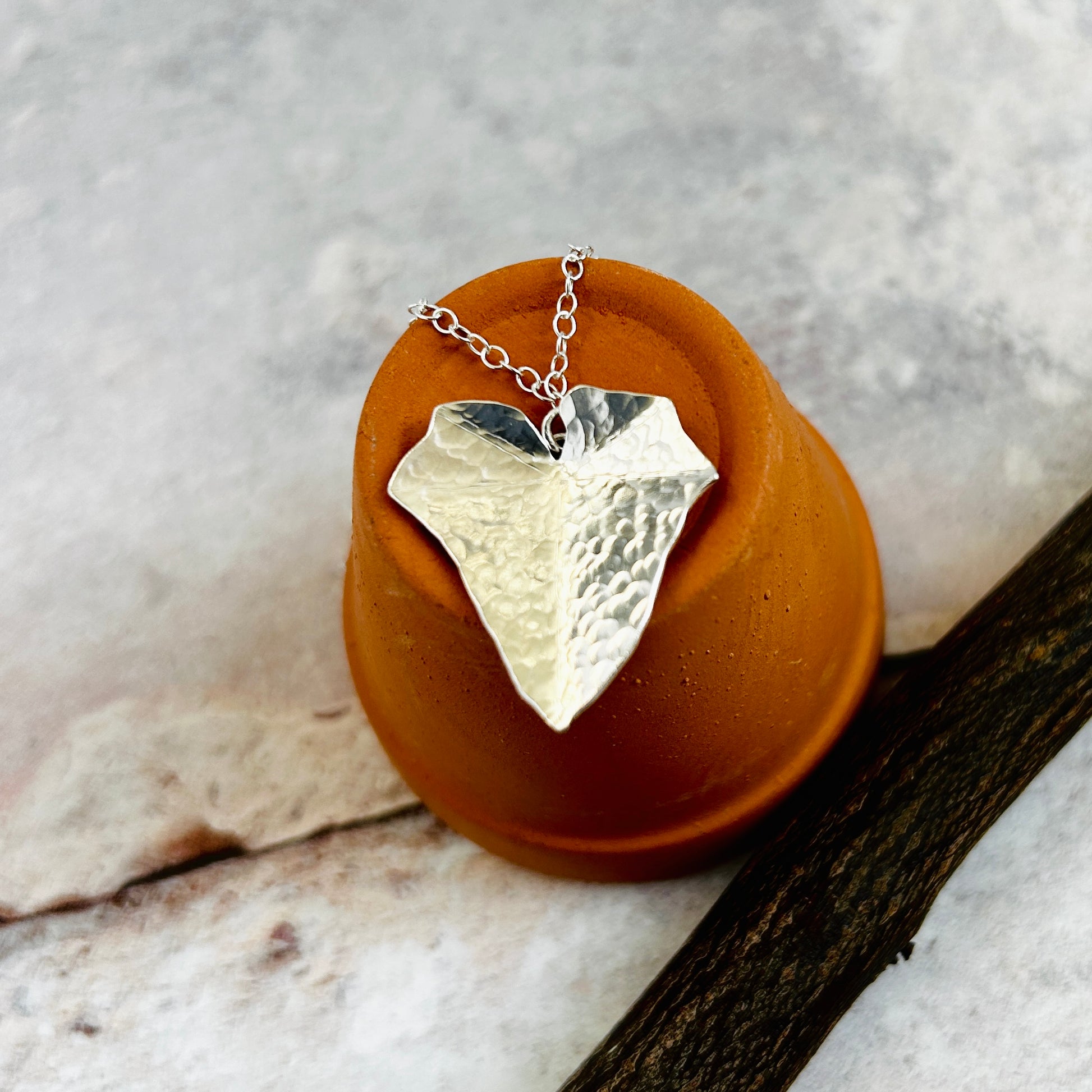 This silver handmade Ivy leaf pendant blends craftsmanship with personal meaning.