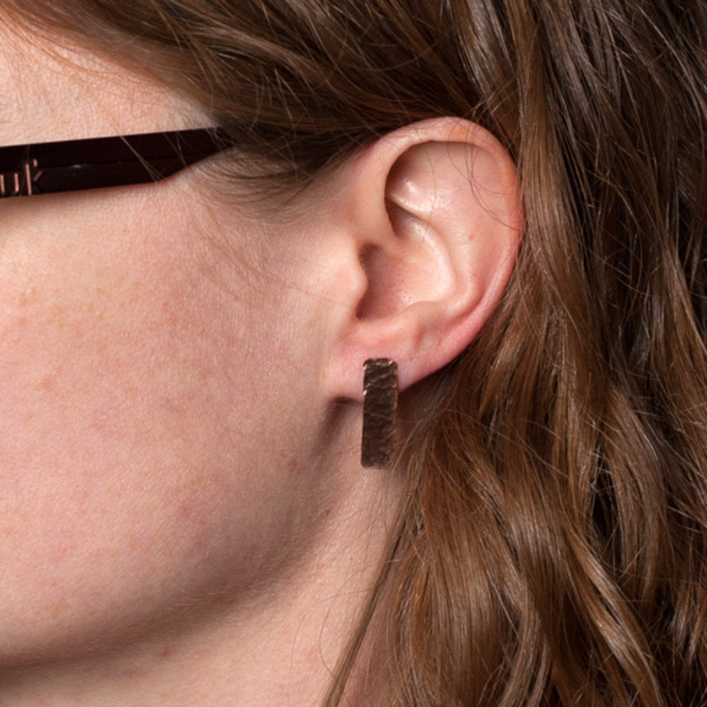 Long hammered copper stud earring