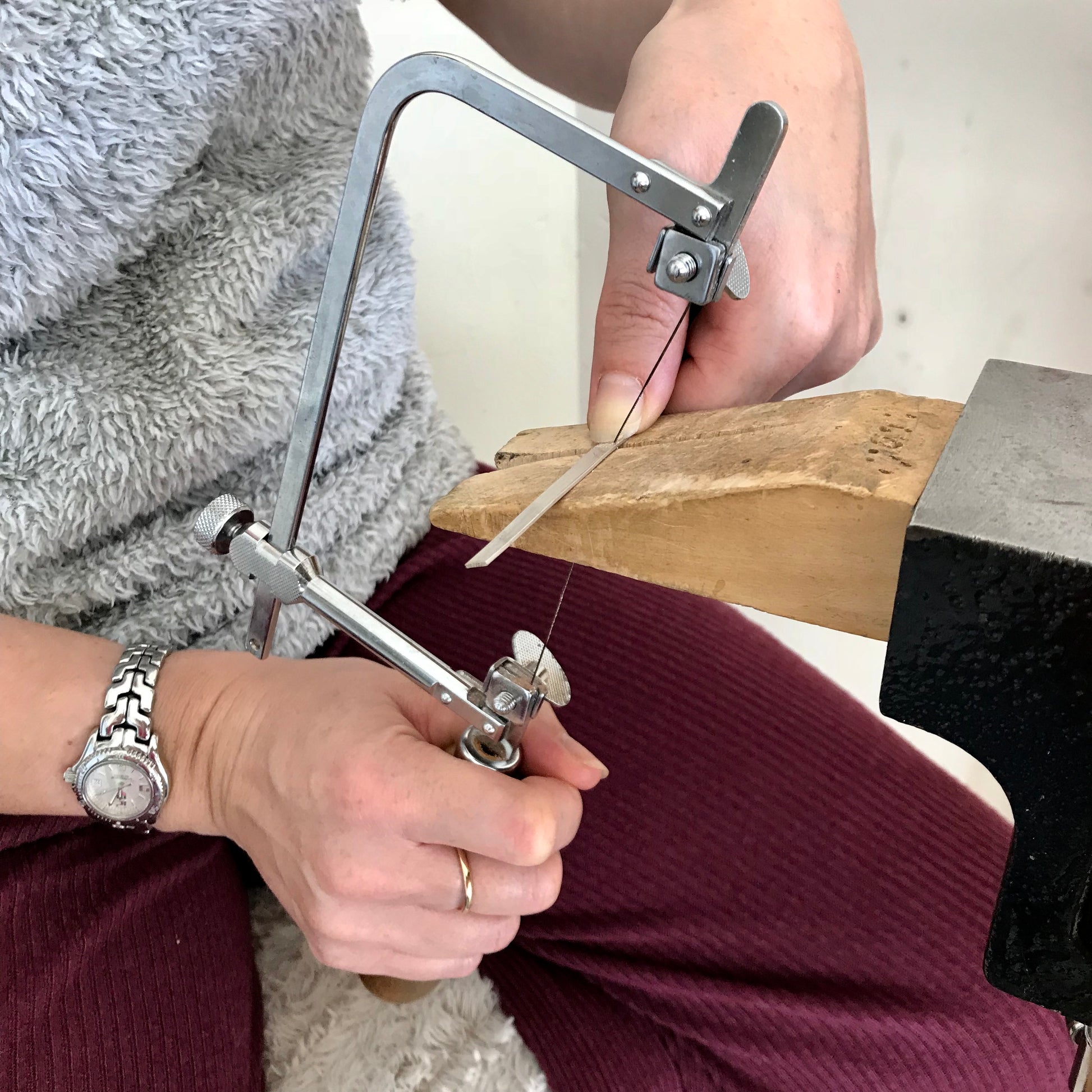 Under the tuition of Zoë you will design and make a sterling silver necklace inspired by the theme of circles. Trying out a mixture of textures with various hammers and mark making tools, learning how to saw and solder, and finishing up with a necklace for you to keep.